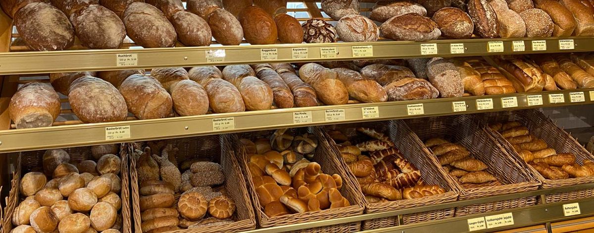 Herzlich willkommen in unserem Laden! Hier sehen Sie auf einen Blick, was wir Ihnen bieten: Ofenknusprige Backwaren und duftiges Feingebäck - alles täglich frisch aus der eigenen Backstube. Ausserdem erwarten Sie gluschtige Sandwiches und Snacks, klassische Stückli und feine Patisserie. Und natürlich unser vielgerühmtes hausgemachtes Birchermüesli.
